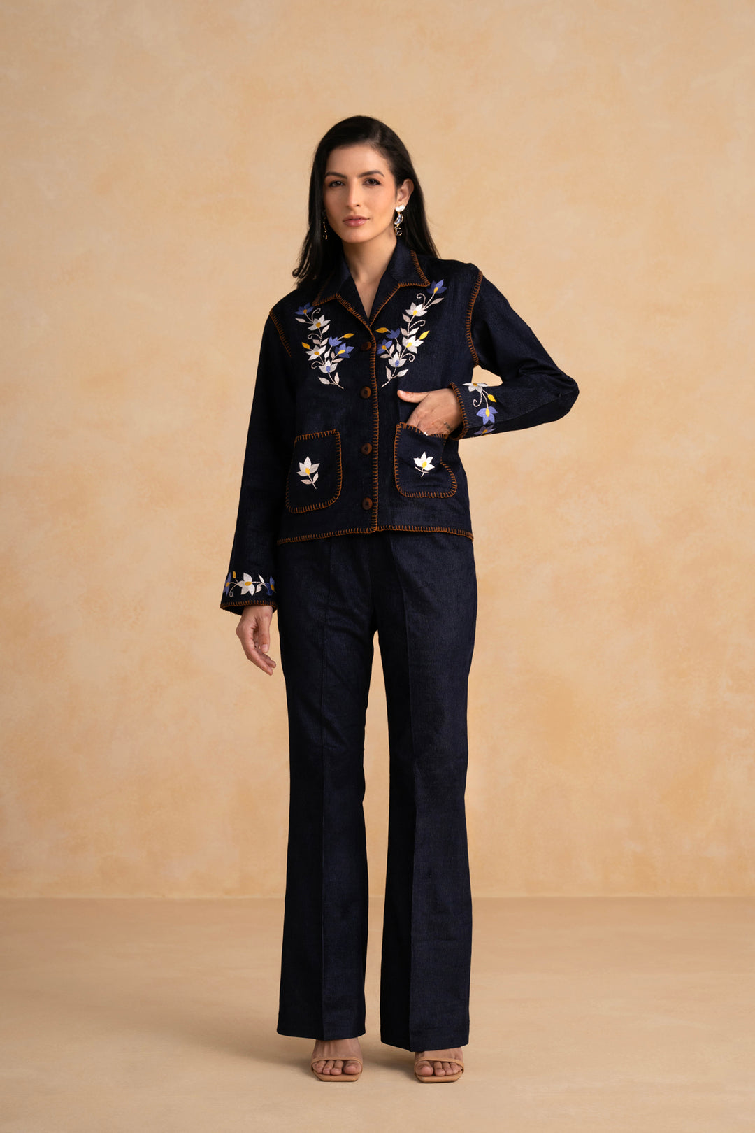 Megan Co-ord Set (Full Sleeves) - Indigo Blue